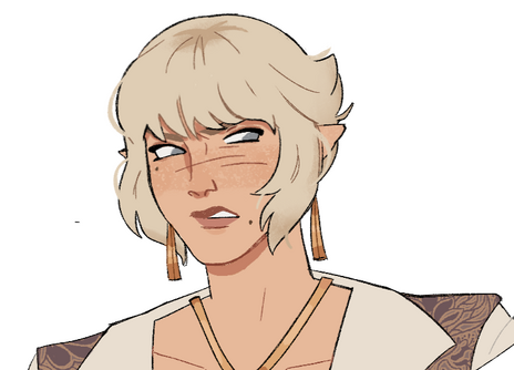 as an artist, moe sees light in all she does. although many take her for a sellsword or mercanary, much of her work is performed more with a paint and brush than it is biting steel. claustrophobic and often confused, she lives with a dog named egg and more optimism in her little finger than most have in their whole body.